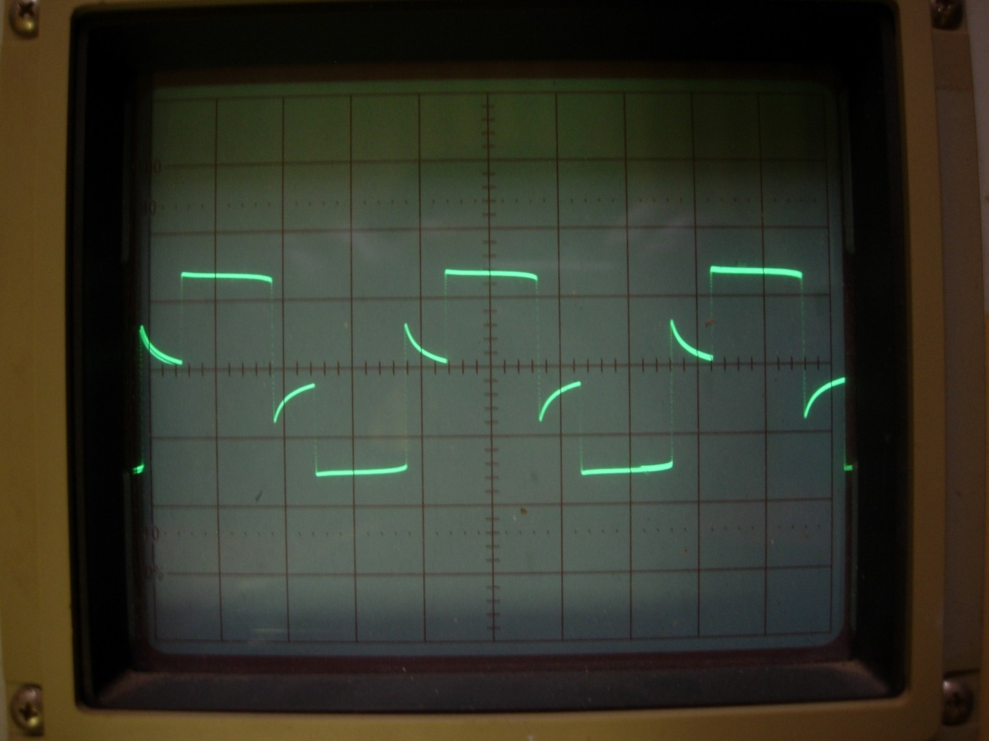 This is the Wave forms fed to the Engel compressor, about 20V & 50 Hz. The square wave is from the 12V drive, the sine wave is from the mains.