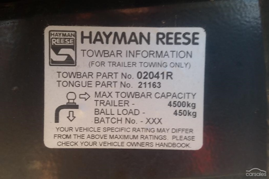 EXCITING FEATURES - Power door mirrors Cruise control ABS brakes 16" alloy wheels Power steering Tachometer 4 speakers Side steps Hayman Reese 4500kg rated tow bar with 70mm ball.