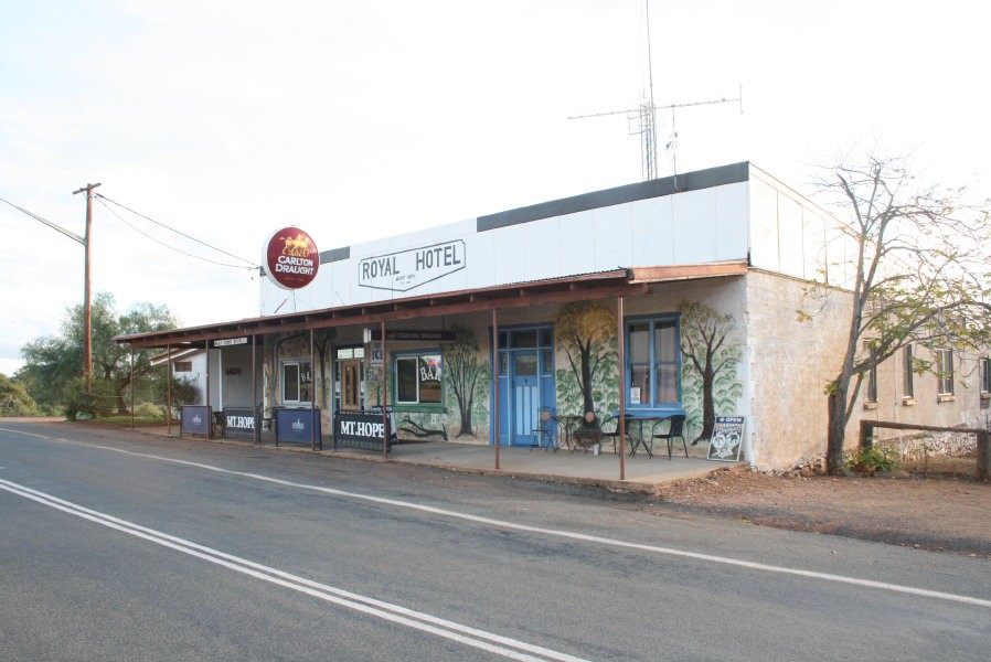 There is a good roadside camp at the Royal Hotel at Mount Hope ... mid-way between Cobar (160Km north) and Hilston NSW (95Km south) on the Kidman Way.