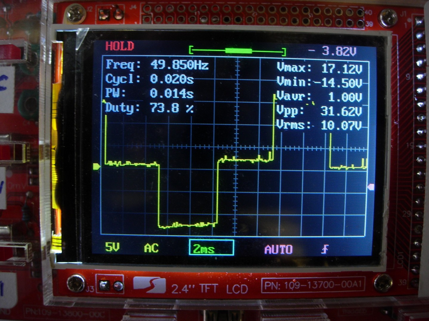 Thaught id just show you this little compact LCD CRO Phil c. They are available from Banggood on E Bay for $36.76 freight free, I have built 2 of them & use them quite a lot they are only 200Khz band width but are quite usefull for vehicle electronics. http://www.banggood.com/DSO138-DIY-Digital-Oscilloscope-Kit-SMD-Soldered-13803K-Version-With-Transparent-Acrylic-Housing-p-1051616.html The pictures are 240V ac through a small transformer fed to the CRO, showing the wave form, of Mains then a Jaycar 12Vdc to 240V ac 150W Square wave inverter. I have not had any trouble using this unit to run plug packs for phones or running a small 240V AC fan of it. I do have a larger CRO but I find this fits in the tool box & you can freeze frame it. There is a small amount of noise on the wave form which is in the internal pre amp, which I just ignore.