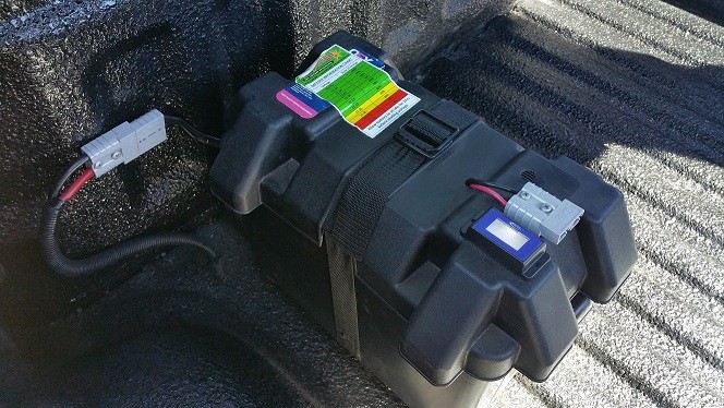 2nd battery in tub, 100 A/H with Anderson plug and voltage readout on battery box.
