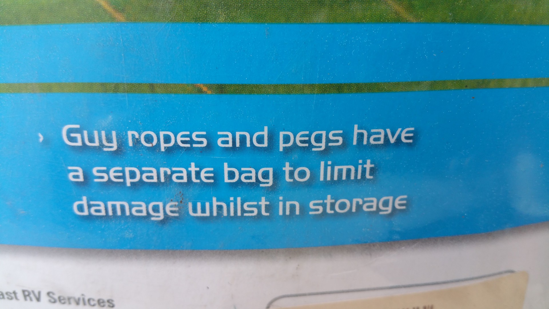 Pegs and guy ropes included which are housed in a separate bag to prevent damage to the screen.