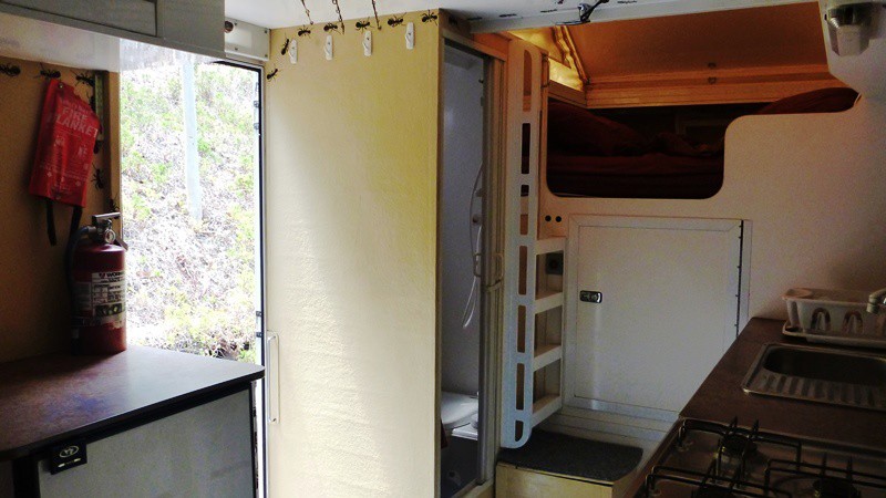 I built all the furniture in the OKA from fibreglass sandwich panel. It is fully structural and forms part of the strength of the body.