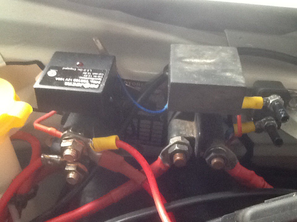 I have two voltage sensing relays fitted in the front of my Hilux. One for the aux battery and the other for the caravan fridge.
