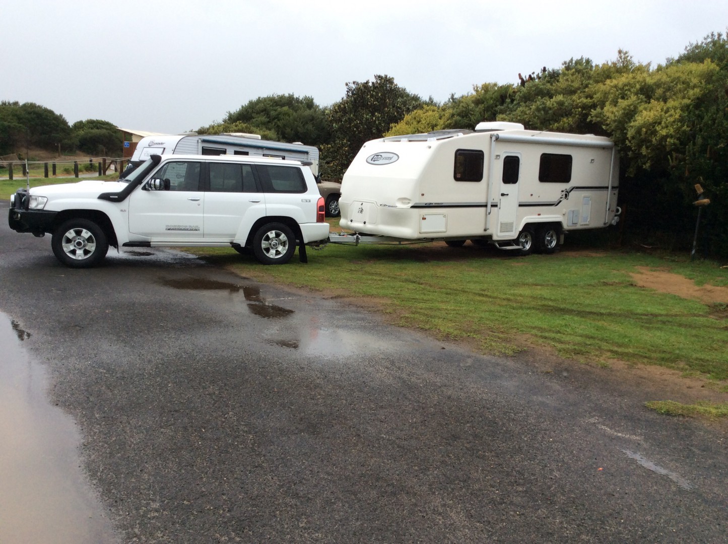 Our rig is a twenty three ft Full fibreglass monocoque construction caravan.