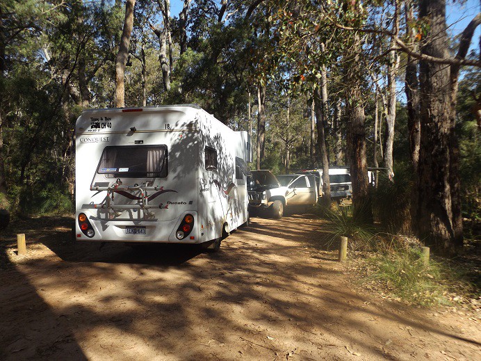 I would not take a long caravan into the general camping area, due to the bendy track and trees close to the edge of the tracks