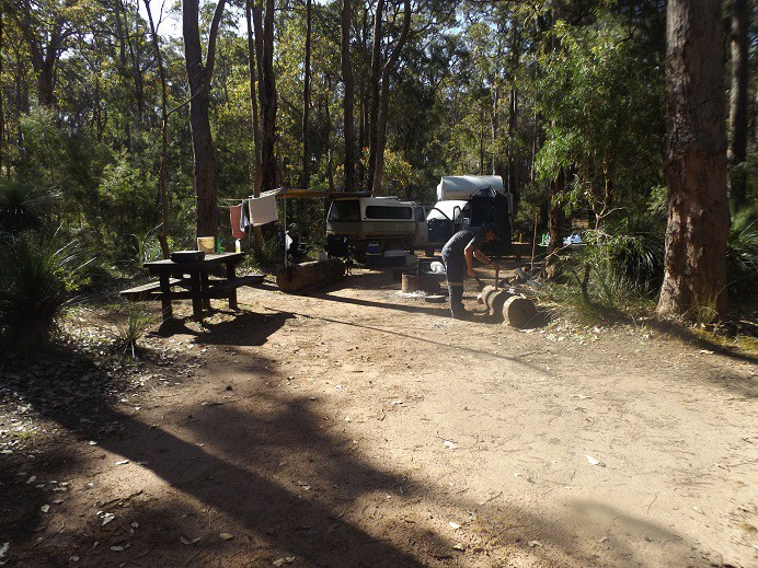 Drop toilets, gas BBQ, each site has their own fireplace with a swinging plate and hanger, for BBQ and billy cooking, as per most bush camps, there was no drinking water