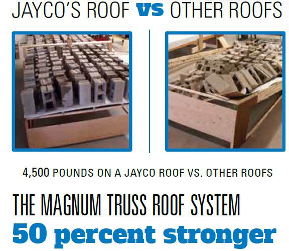 Jaycos exclusive Magnum Truss Roof system for strength & storage built in roof ladder.