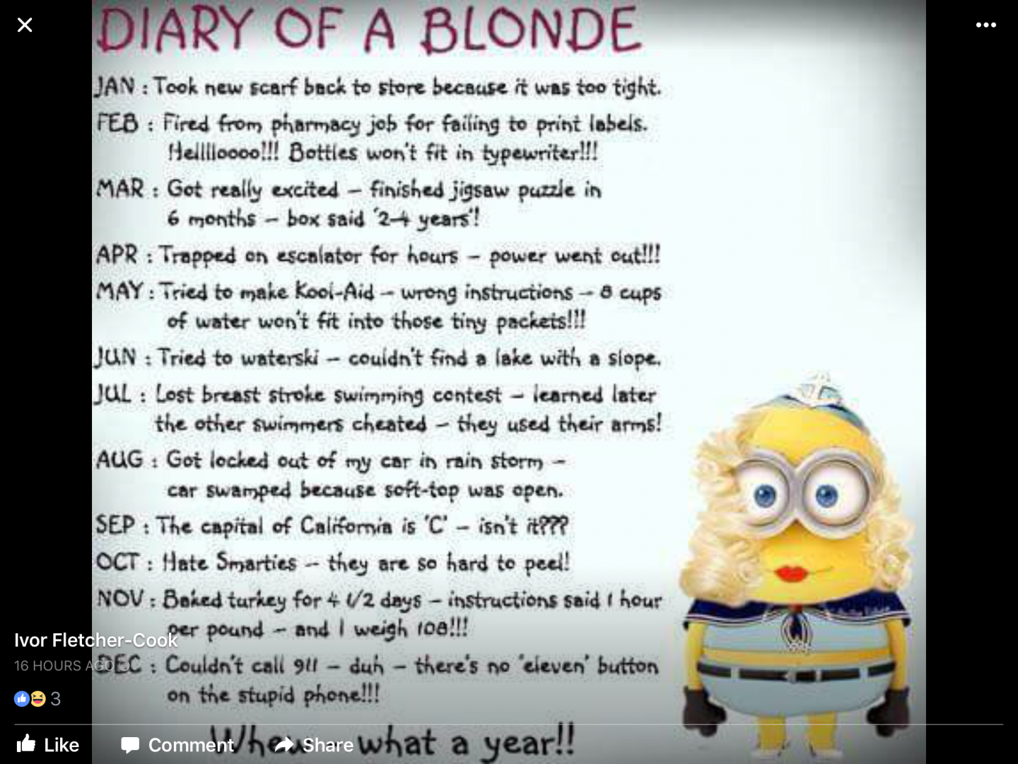 Very clever, had a laugh at each comment, even though I used to be blonde.