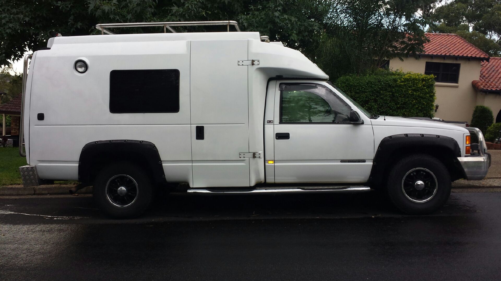 Decommissioned ex ambulance. I am the only owner since ambulance service and vehicle has been maintained and serviced throughout. Vehicle has total 240k's however motor was serviced and rebuilt by ambulance service and total travel on rebuild 110k's. I have only travelled approx. 50k's since owning vehicle and only used for black top touring no dirt or off road. Vehicle is in perfect running order with extensive work carried out with new injector pump and ECU, glow plugs, new turbo and actuator fitted, brake linings replaced, springs and shocks renewed, adjustable air bags fitted for towing, bushwhacker fender flares and chrome/black 8 stud wheels fitted. All parts A1 quality sourced from USA and professionally fitted. Extensive aluminium and stainless steel fabrication around vehicle front/rear bars, running boards, roof racks, ladder etc. Vehicle is registered as motor home and has plenty of room for bikes, tools, sports gear or whatever with various compartments. I have used the vehicle as a tow wagon for 24ft van and is very comfortable and will tow any load with ease. I am selling due to upgrade to 6.6 Duramax GMC and vehicle taking up space. If anybody requires a capable safe tow vehicle or even a camper this will do the job comfortably.
