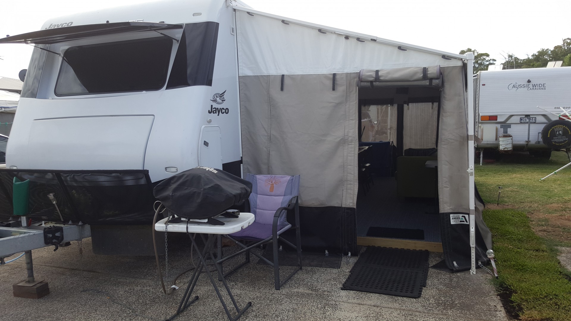 Your setup looks great. What did you use for the wooden floor? What make of annexe do you have? We are originally from WA but been travelling for almost a year now. Currently in Tasmania as caretakers at a caravan park for 6-9 months. We are in the process of having an aussie wide annexe fitted and have c-gear matting on the ground. But like the idea of raising up the matting as it rains heavily here often! Enjoy Bunbury, know the area well as my brother has lived there for many years.