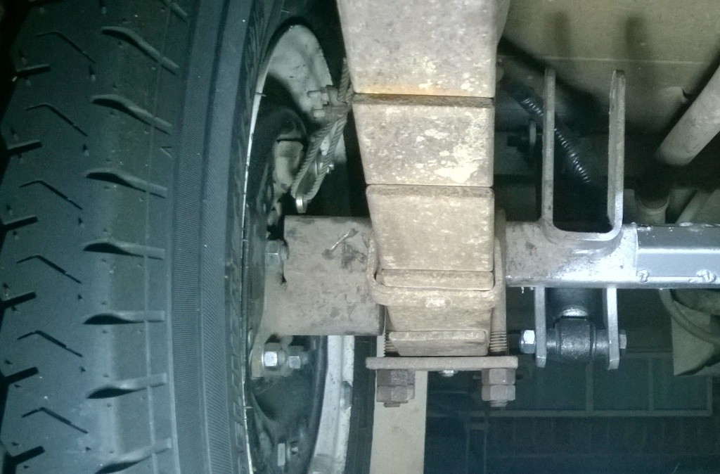 Axles also have toe-in. I cannot tell for sure if this is deliberate, or accidental, but they do have toe-in built into them. My Jayco had the axle delivered with toe-out. About 9 mm at the centre of the tread. The tyres wore out after 18000 km. I cannot understand why... I took it back to Jayco and after a lot of heated discussion they arranged for it to be straightened. Short story made long, that didn't work and after wearing out another 2 sets of tyres (with toe-in this time), I contacted Al-Ko who made the axle and they replaced the axle for free. Even that axle has about 5 mm toe-in, but thusfar the tyres seem to be wearing OK. The Al-Ko man said that some toe-in was needed to provide stability for the towed vehicle. I remain to be convinced on that one. The axle is made from a solid square steel bar with the stub axle welded on top of the bar, not the end. Being a circular section against a flat surface, there is a lot of weld required to fill the gap, and shrinkage of the weld will cause distortion - hence the toe-in.
