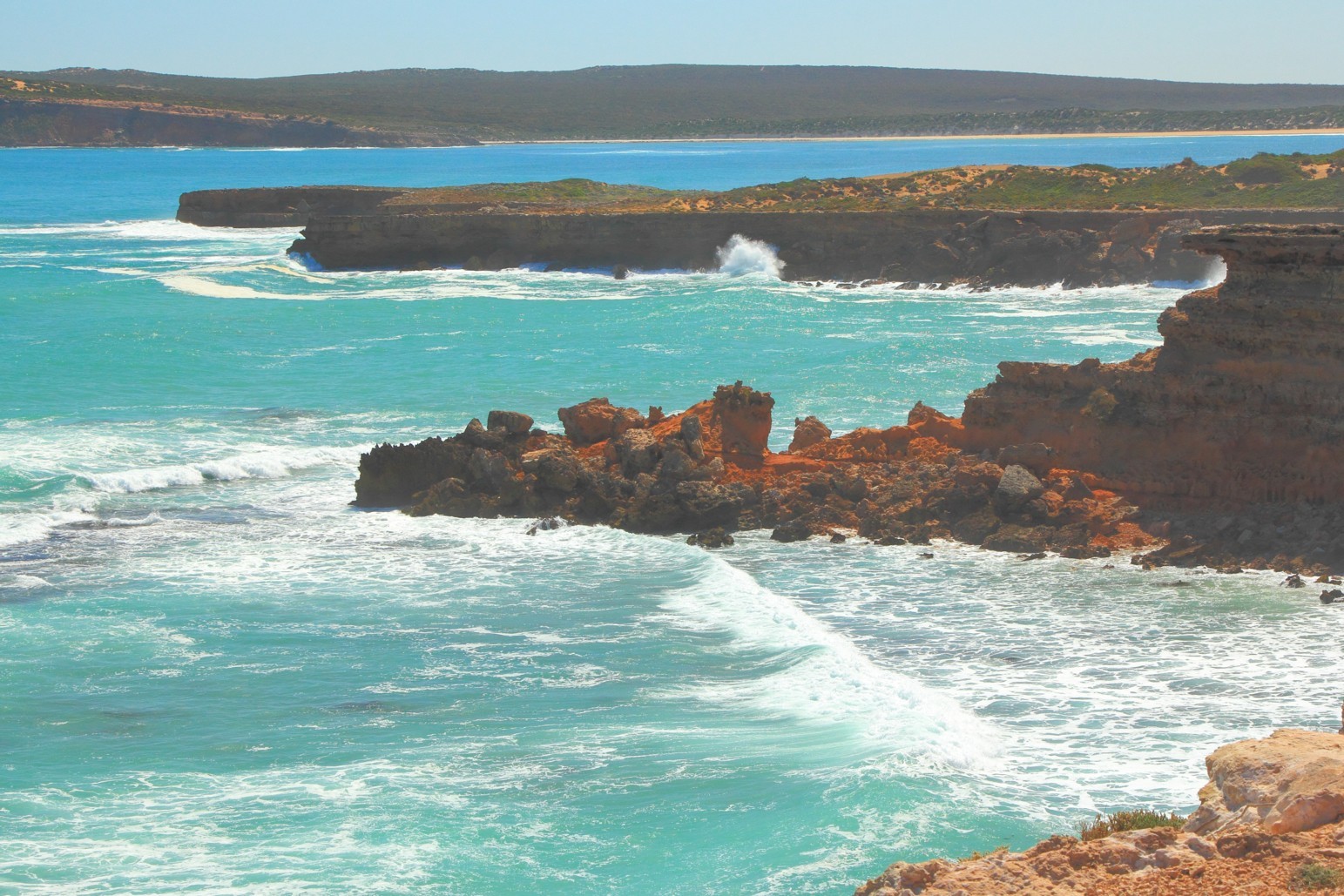 The rugged coast near the entrance to Venus Bay. It's a very different world outside in the boisterous Southern Ocean!