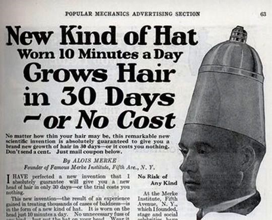 Those ads have either been proved to be a load of rubbish or they are down grading to women - Goldfinger you don't happen to have the contact details for the hair replacemnent hat do you I wouldn't mind one of those ?