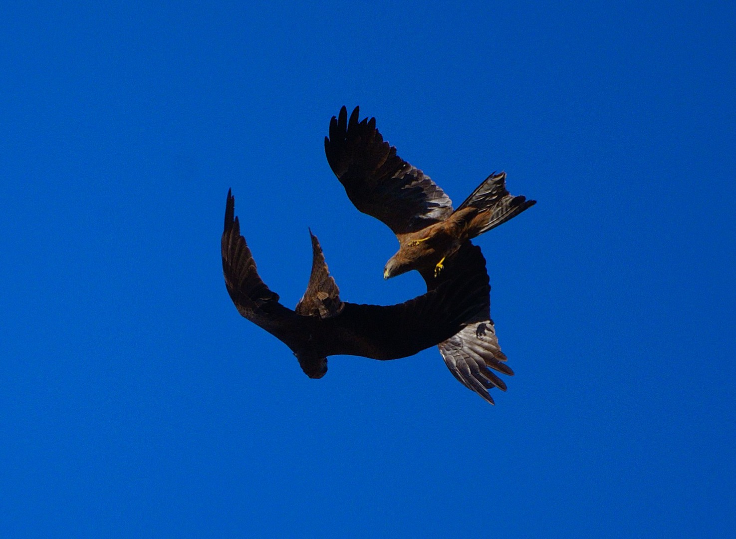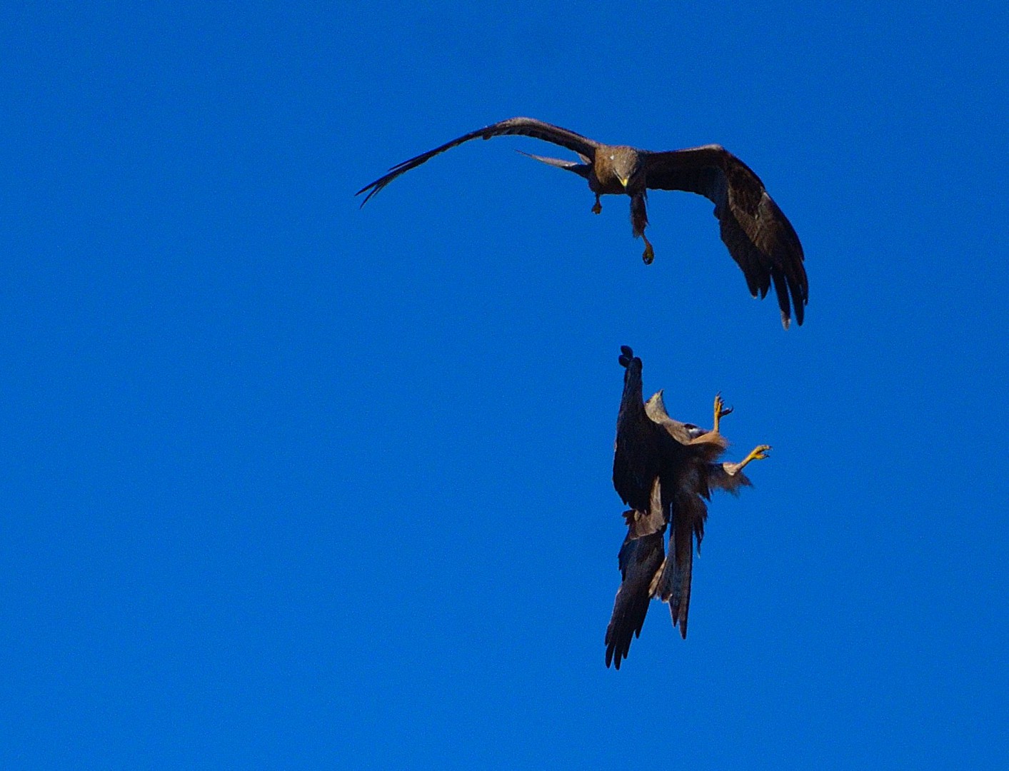 not to sure if the birds are fighting, or one was in the others territory,could be male and female, or just any gender in ones territory to my knowledge they are kites, was also a small bird involved, I'm no expert on birds just like taking photos