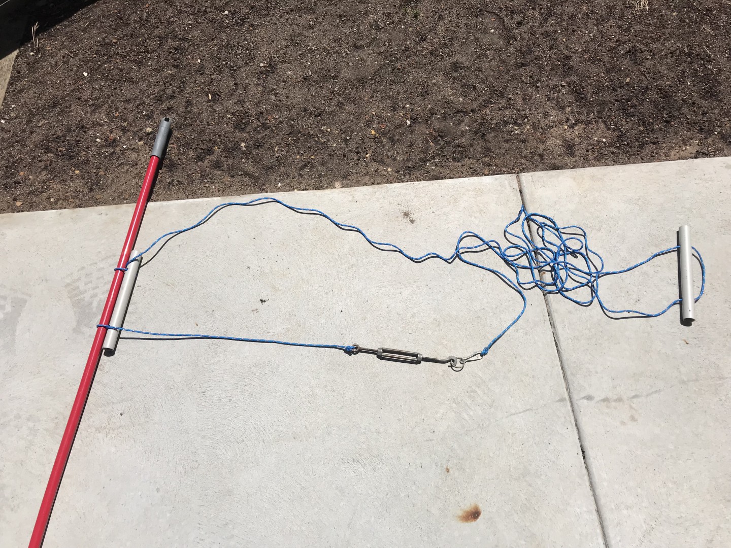 He walked over the road to Bunnings or might have been Mitre 10 (cant remember) and bought all the bits there including a turnbuckle and two D shackles to mount it all up.