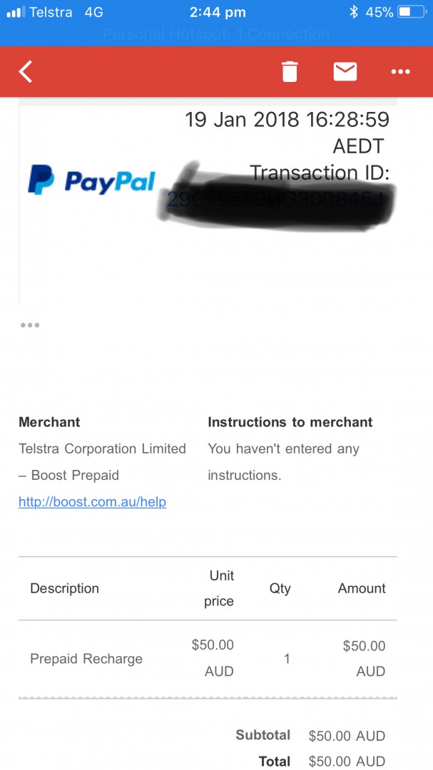 My bank statement shows my monthly account being paid to Telstra not Boost