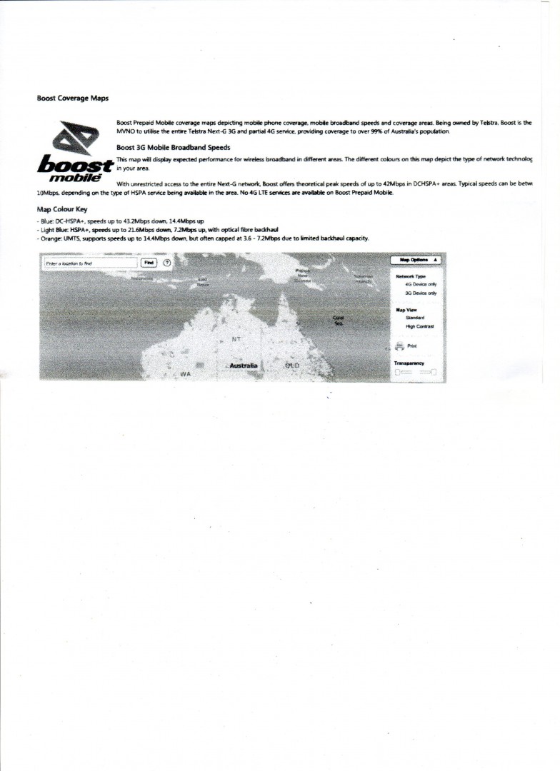 Bazza that screenshot is not very clear on my ipad and it doesn't show the entire map, but I would not worry about it too much as there is lots of detail on the web if any of the doubters wish to actually look for it. I have noted that Boost list that they have access to 4GX in some areas now that was not listed when I did my research only a couple of months ago.