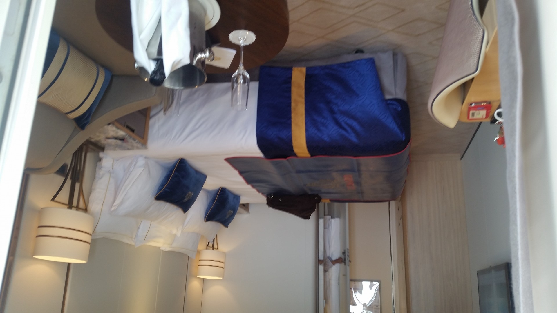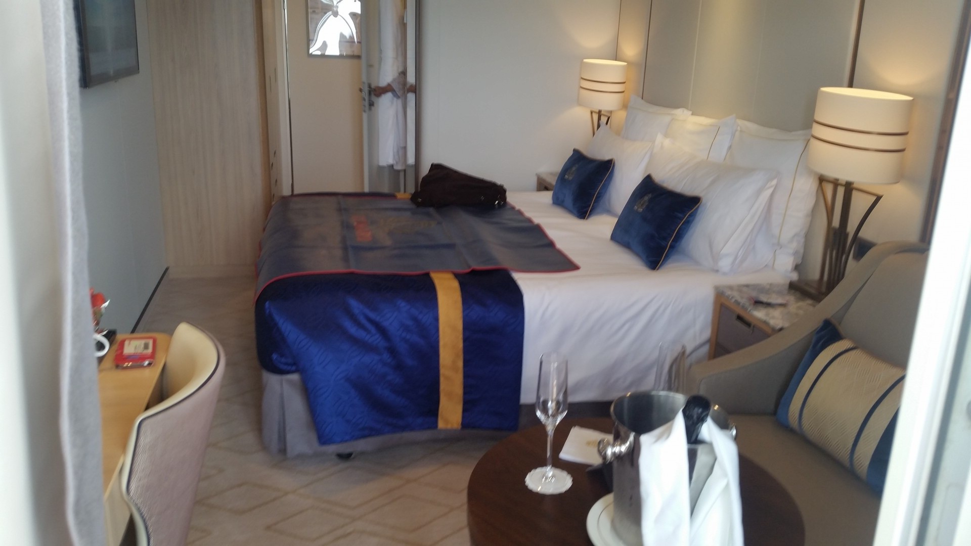 Gday All.The wife and I have just tried a small adventure .We Climbed aboard the Queen Mary 2 at Melbourne last week for a 4 day /night journey to Kangaroo Island and back.The ship is quite magnificent and you feel a bit overwhelmed upon arrival .This was further advanced when we were told that we had been upgraded from our "sheltered balcony" cabin to a stateroom on the very top floor and cabin number 5 of 1300 cabins ! Opening the door of the stateroom we were greeted by a valet holding a tray with champagne, 2 glasses and a large glass of strawberries !