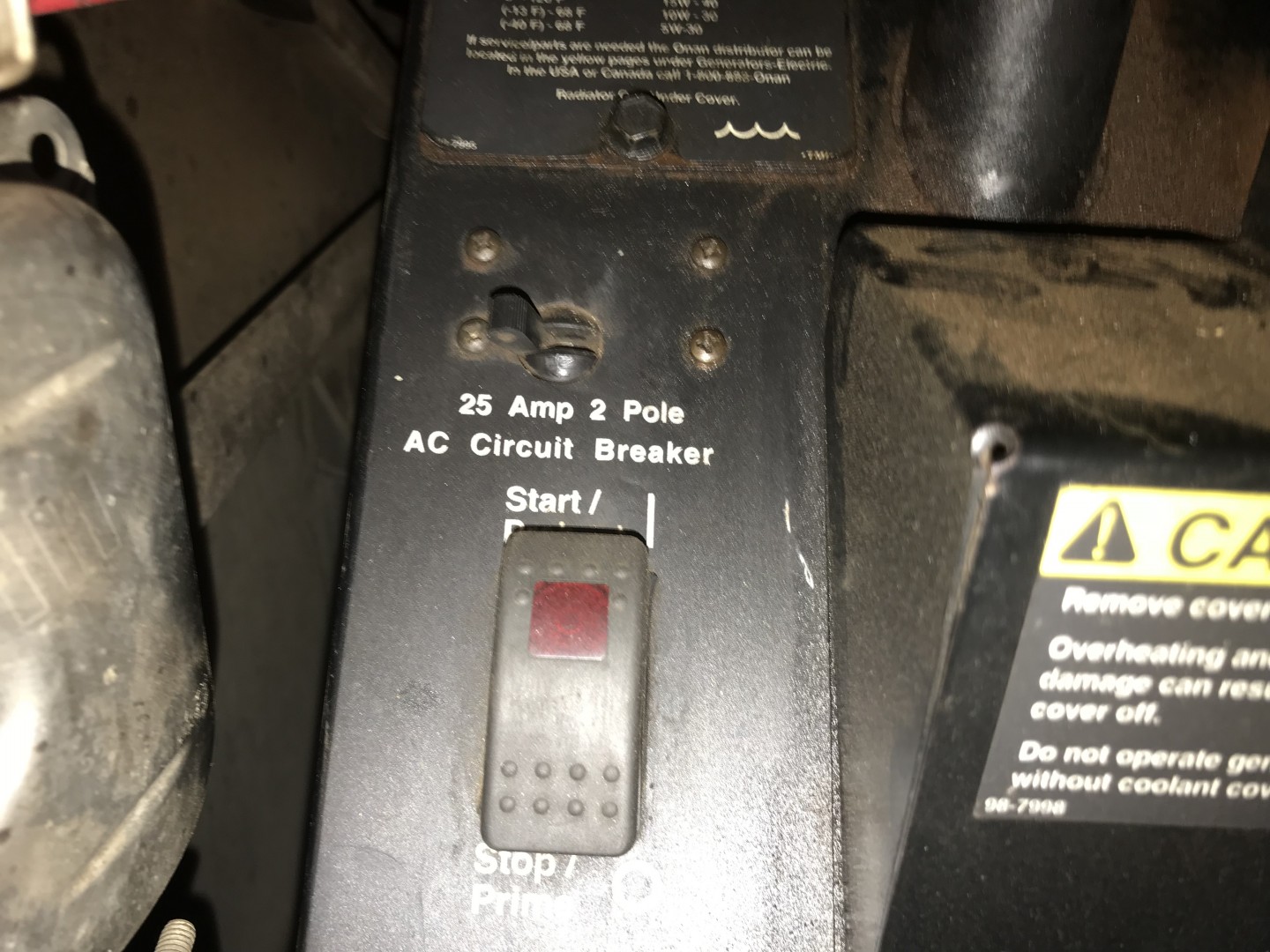 Had a little earth fault on truck battery recently when I disconnected battery to weld shock bracket . A few days latter I found the generator is not charging . Looked ( man looked ) everywhere for breakers etc . All ok . So did what everyone seems to do these days . Googled breaker Onan 5000 diesel generator . Couldnt find what I wanted . Left it for a few days. But always thinking about it . So this morning in the rain in SA coast . I grabbed the torch to have a PROPER look .