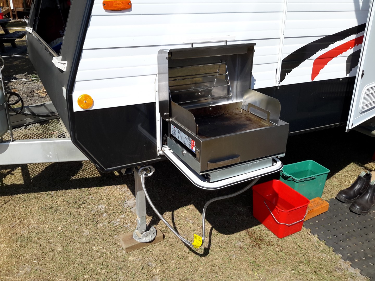 The second hand caravan had a slide out bbq and a washing machine fitted 2 items which I was going to pull out thinking why carry this weight but using both items on our first 2 month tour I guess they will be staying.