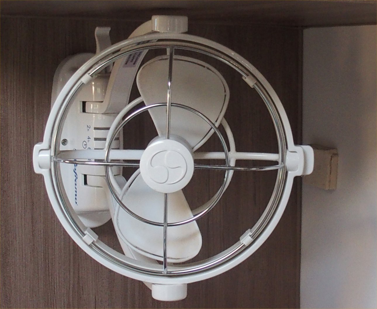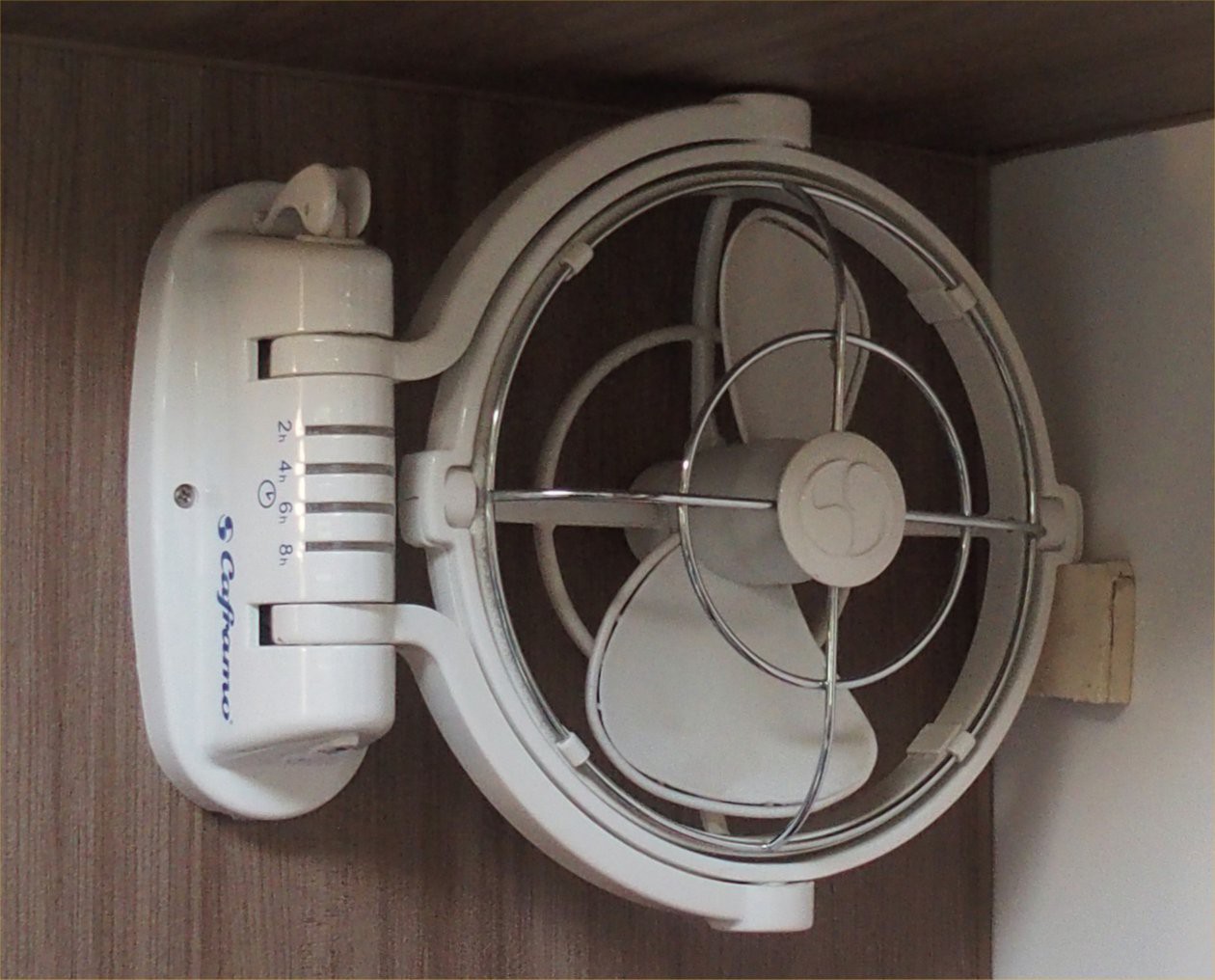 I then purchased a Sirocco 11 fan which I have wired up and screwed to the wall It appears to give a gentle breeze at about 3 metres, reasonably quiet, and uses about 0.25 amp at high speed I am able to manipulate this fan to reach, the table, or the kitchen, or the doorway, of the motorhome I have not yet gone through a summer with it, if it is OK then I plan to buy a second one