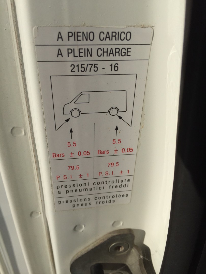 The Fiat Tyre Placard states 5.5 Bar (80psi) front & rear.
