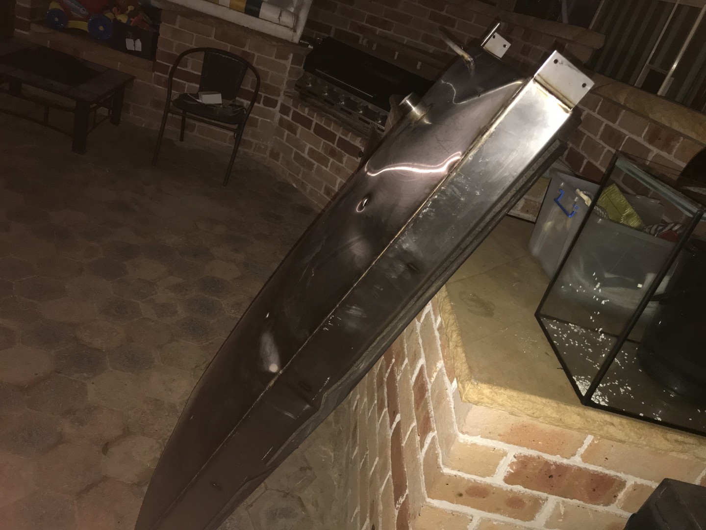 Ill come right after a week or so . Washed and cleaned fuel tank in boat . I took it out to fix a cracked weldin . I TIG welded the stainless fine . Walked tank around the front. Saw a slight inperfection . So I used mig in garage . It was back