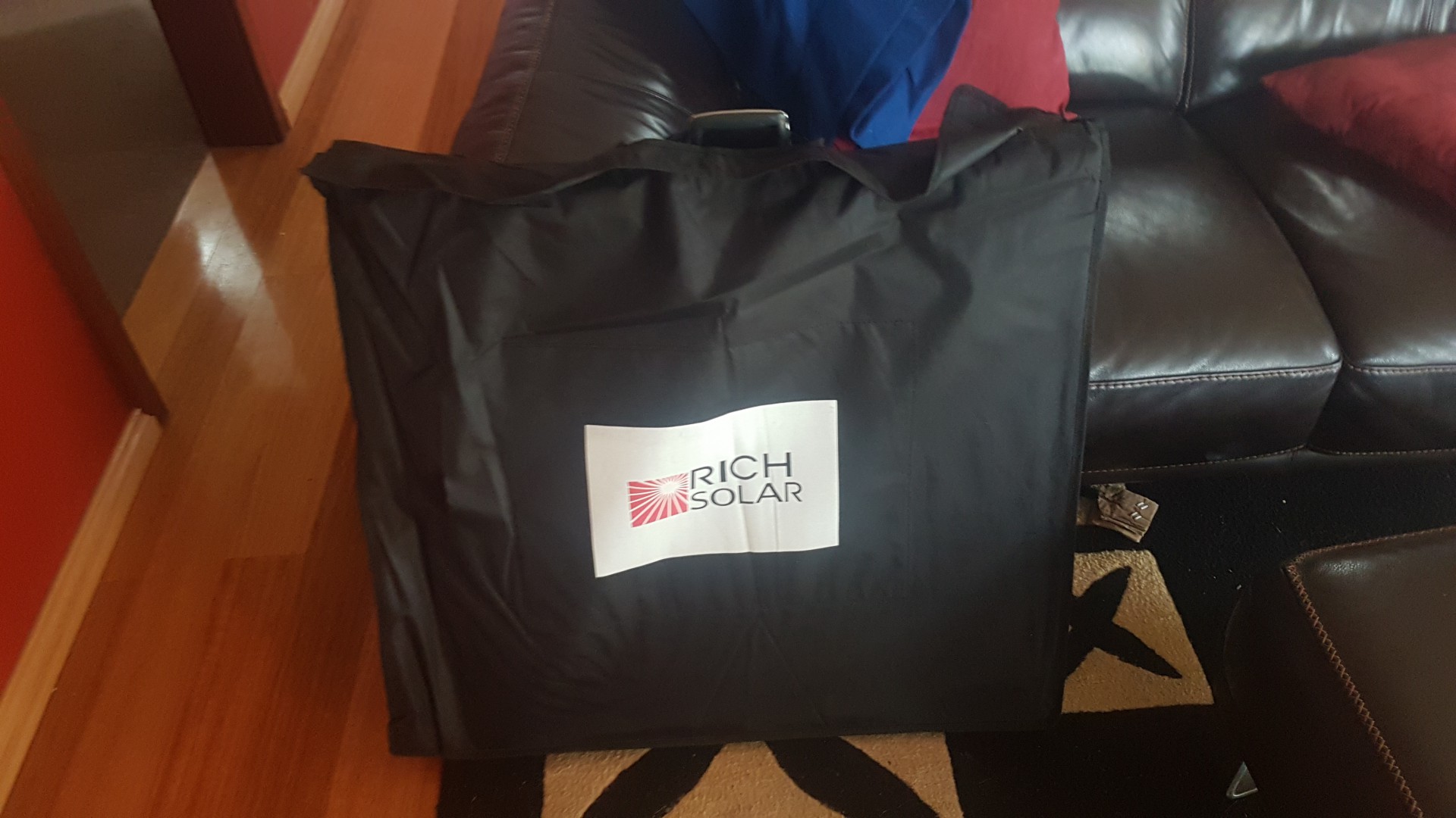 Bought my panels over the net same bag as yours different brand,they are 160 watt and work brilliantly,the bag was crap ,I could not care less about the bag they lay on the bed when travelling,the old panel was an 80 watt we bought a long time ago for three times the price,all solar panels are probably manufactured in the same factory in China,just with the portable panels the regs are cheap garbage,just mount a good Victron near your battery ...