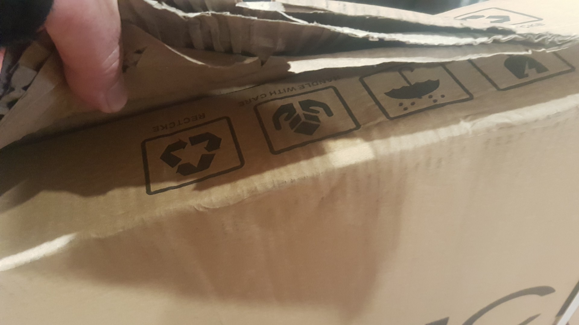 When I received the panels the packaging was in a pretty poor state. The bottom was torn corners banged around a bit. Probably not so good.