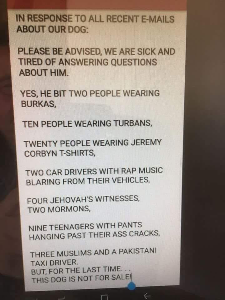 Mate, that dog could make a fortune for it's owner. They could hire him out, suburb to suburb. Mate you could name your price on a hire dog like that. Baggie.