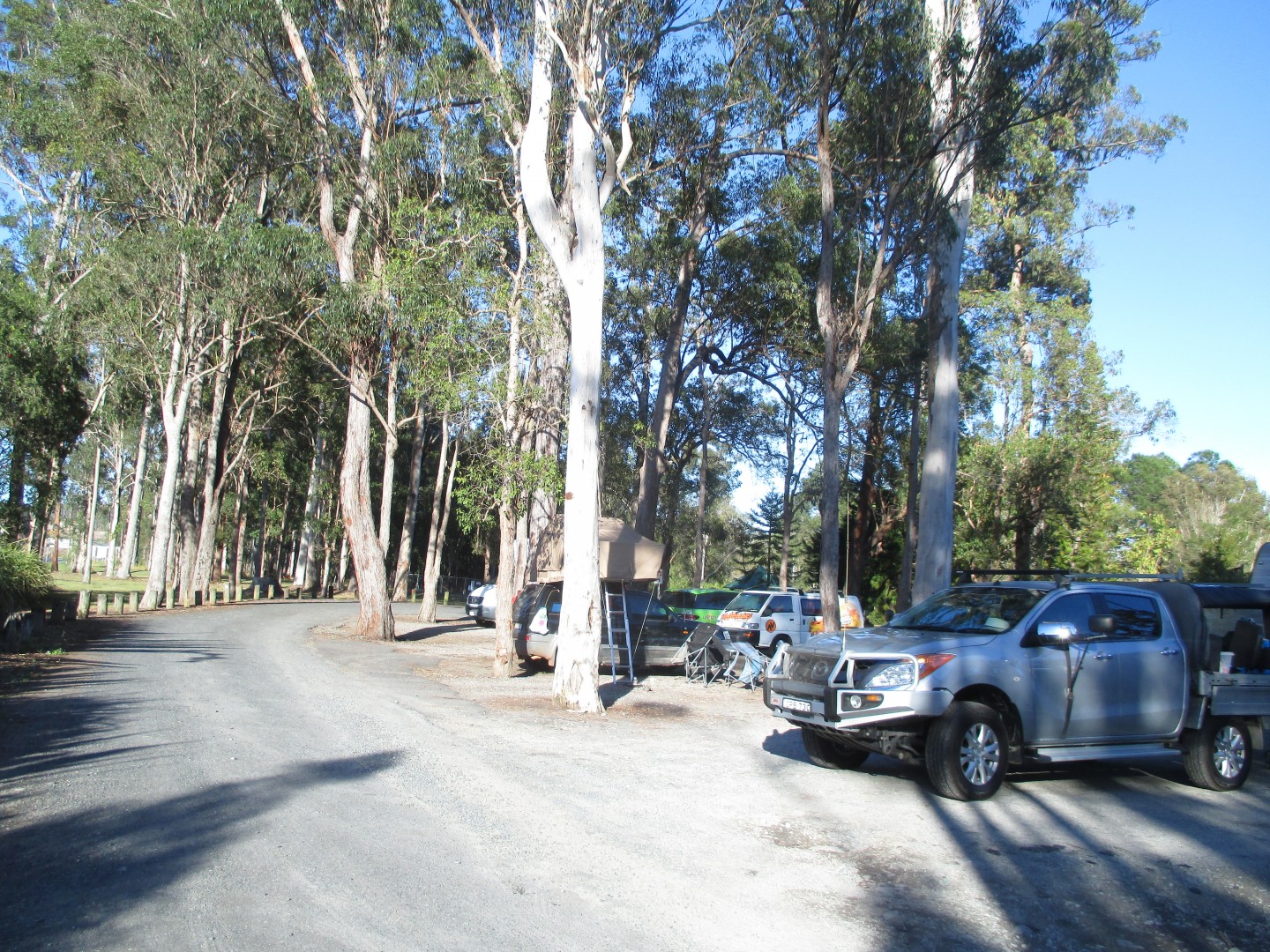 This is a small but well patronized car park, free camp outside the New Italy Museum complex just south of Woodburn NSW on the Pacific Highway. Okay for an overnighter. No space for an awning the night we were there. It is the car park for the museum too as I said. Toilets behind the museum. Coffee shop at the museum during opening hours. Closes at 4pm but then the Revivor/Survivor stall opens till 6pm and opens again at 6am till the opening of the museum. The gentleman at the revivor/survivor stall told me this particular spot will disappear with the upgrade of the highway but a new and not as yet completed area behind the museum complex will take it's place. A lot bigger and bitumen by the look of it. The historic pioneer well out the front of the museum is also on the chopping block.