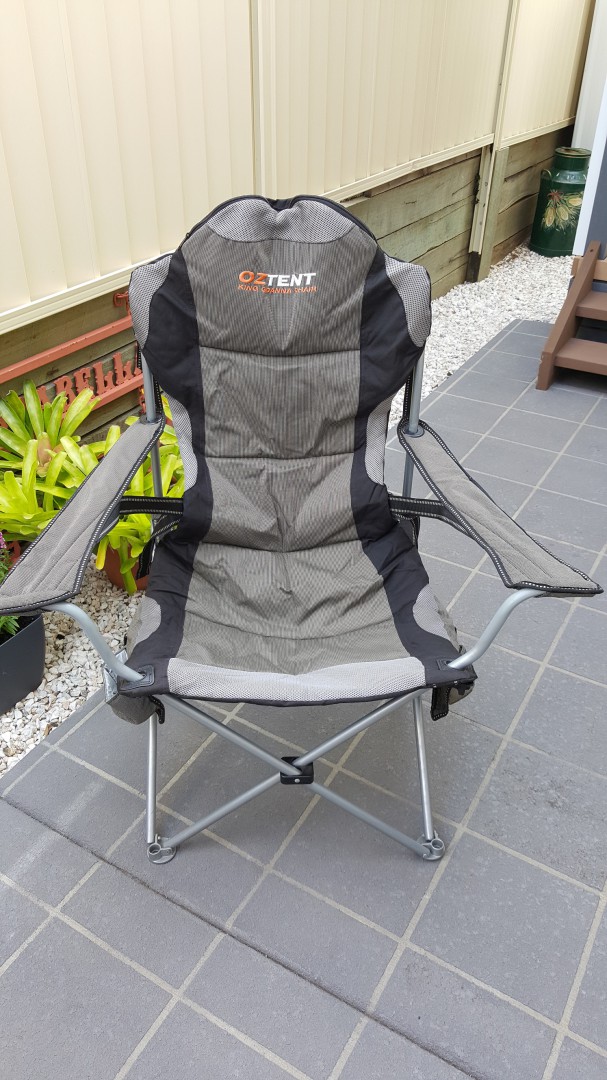 Adjustable lumbar support and 2 insulated drink holders. Heavy duty powder coated steel frame and 600D fully padded 2 tone polyester upholstery.