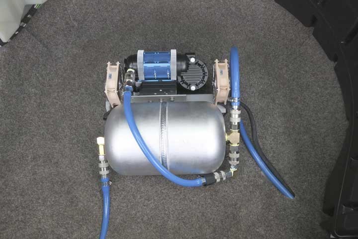 The other side compressor (low pressure /high volume) is more akin to a compressor or pump you would use for air beds and camping type duties. The hose it stowed on the bottom of the unit.