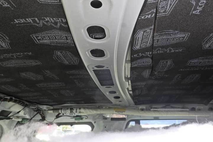 Ceiling front. I didn't use butyl on the roof, only foam. Maybe on a van over the driver & passenger it could be worth doing.