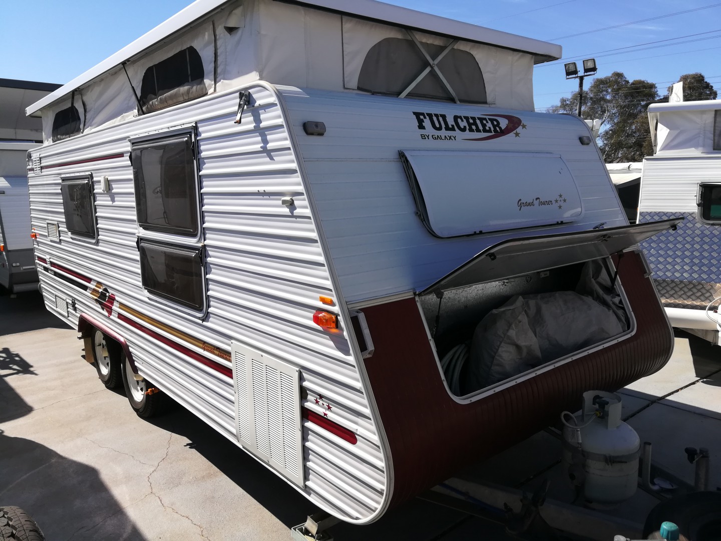 Our front vinyl stone guard looked really second hand and everytime I went near my nephew workshop , they were busy, which was good. Before we departed on one tour I went into the shed and come out with a can of water based heritage red and hand brushed it on, the result from 10 metres beautiful, that lasted until the caravan got trashed with hail.