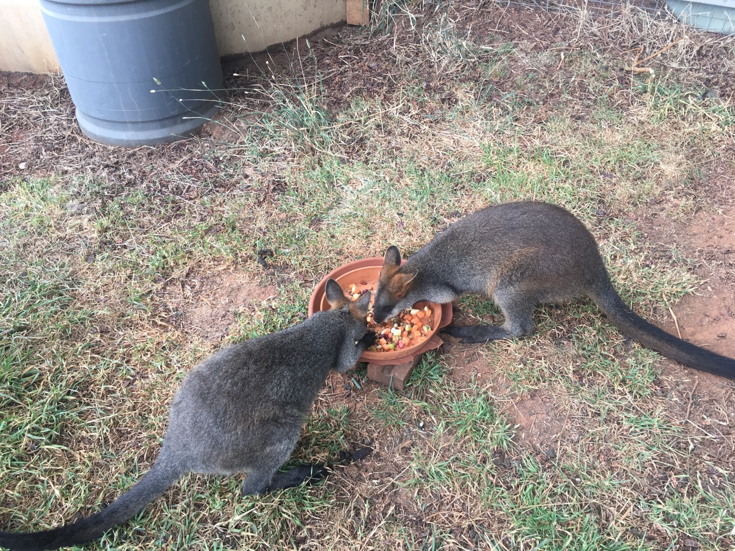 Or better still care for some rescued wild life being black footed wallabies and a couple of small kangaroos. Our farm owners as well as farmers are volunteers for "Wires" who care for the wild life until such time as they feel the need to wander off. One of the kangaroos is visually impaired (not blind) and has remained in the area sanctioned off and in the care of the farm owners.
