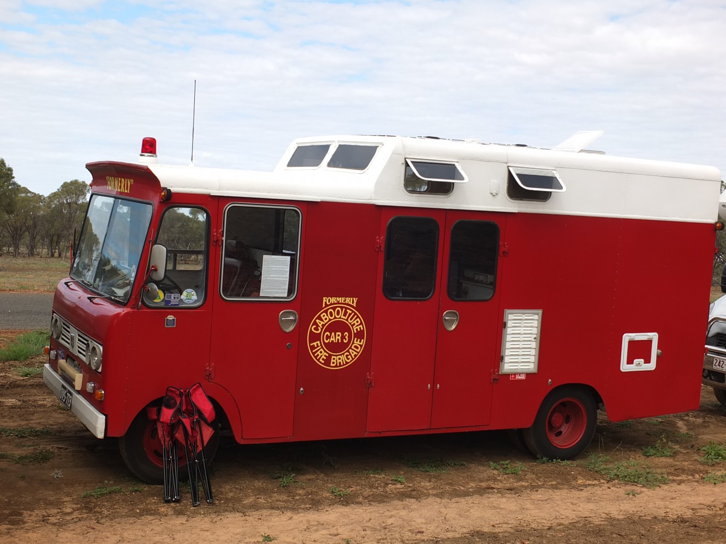 Hi, while we were in the line up for the Longest Line of RVs in Barcaldine, we spotted this remodelled/restyled/revamped fire engine - formerly from Caboolture, Queensland