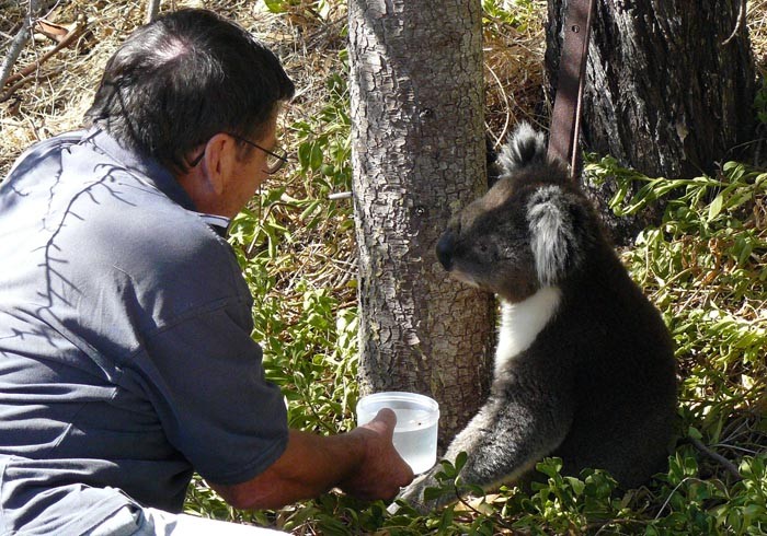 That koala was actually up a pine tree. I took the water over to it and it came down to get it.