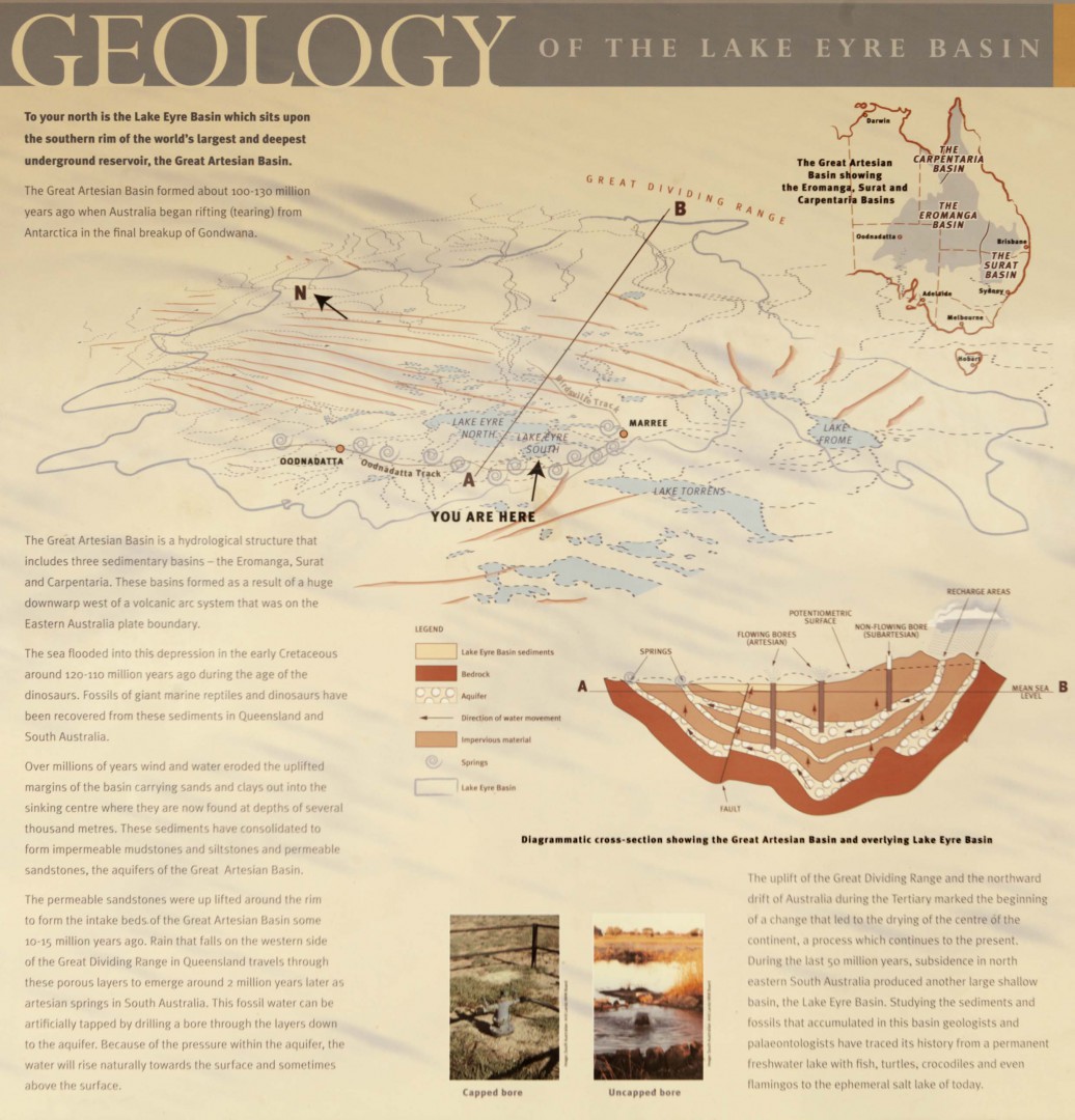 The sign board at Lake Eyre South lookout, we also drove to Lake Eyre North, the road was a bit rough at 24psi but I'm glad we did it. We walked out about 2km onto the lake. Found out latter we shouldn't have done so for safety, 100 metres maximum, but we were aware of time & shadow position of the sun. We also had put on extra clothes as it was pretty cold that day. I can see how easily one could get lost with no defining features around you.
