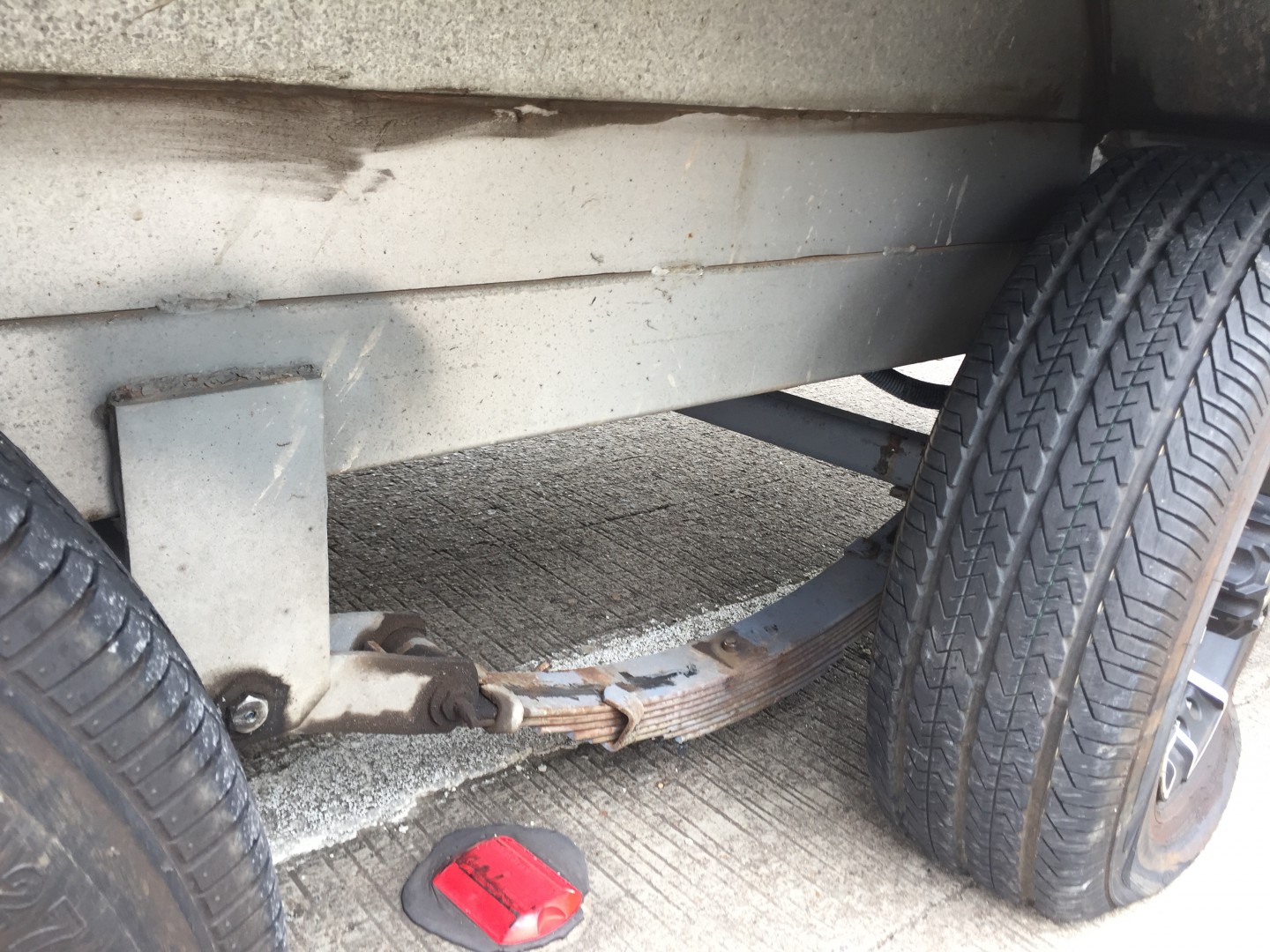 Yesterday I had some feedback from the caravan repairer who spent a few hours getting the van to a safe enough condition for me to tow it back to my storage location and wait for the approval and the parts to do the full repair. As I didn't recover the failed component to see what actually caused it to part company I asked him for his opinion based on what he found. He said that he would rule out corrosion as there was only a bit of surface rust and nothing indicating that it was a problem, the tension on all other U bolts was good, he suspected that this particular U bolt may have failed due to a manufacturing fault or even been over tensioned when serviced. The van has travelled less than 20K and has never been off the bitumen, 2 weeks before the incident we were in Mudgee parked on a concrete slab so I took the opportunity to get under and visually inspect everything - nothing obvious (although I didn't check any bolt tensions). I now have to get a new spare as the one I had was used it to replace a tyre ripped open by the stairs does anyone know anything about MPC-27 tyres or who carries them - personally I have never heard of that brand before.
