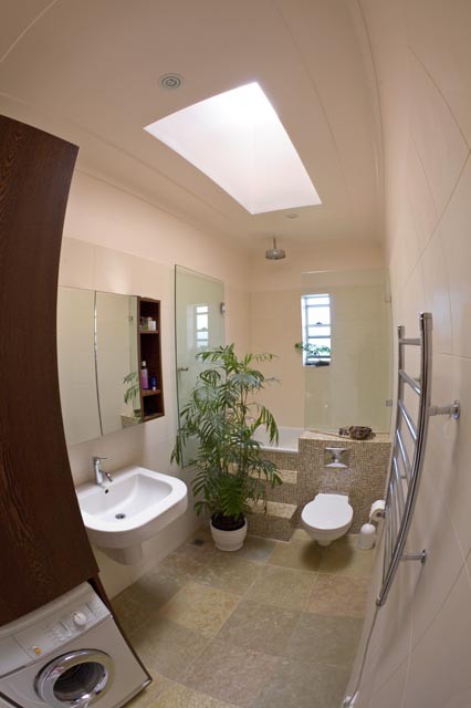 In one bathroom we have the entire ceiling illuminated like a lift ceiling. Really nice light.