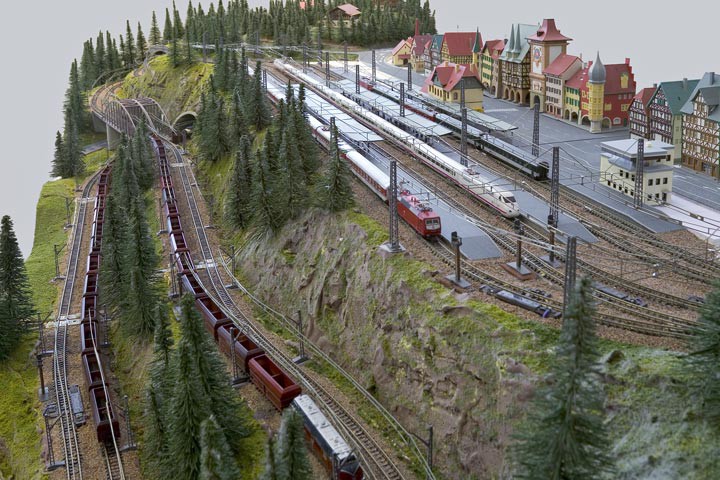 It's tiny, 2.7m long x 0.85m wide, Z gauge.The hills lift out either end for access for derailments.