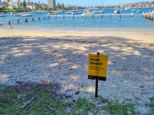 Covid-19 signs have started appearing around Sydney Harbour. Area closed.