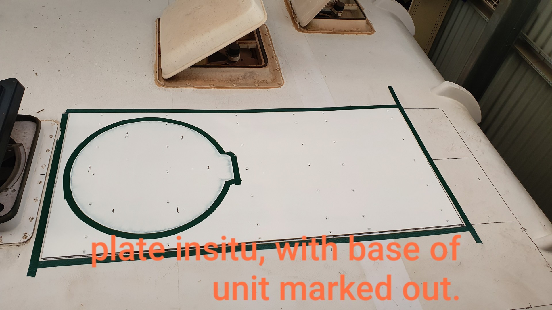 Was pretty straight forward. Plate was 900x500 x3mm aluminium etch primed and painted white. Did this as the base unit did not line up with roof battens. Plenty of screws into fibreglass roof and a ton of sikaflex to ensure my investment doesn't blow away. Whole unit including dish rests on this plate.
