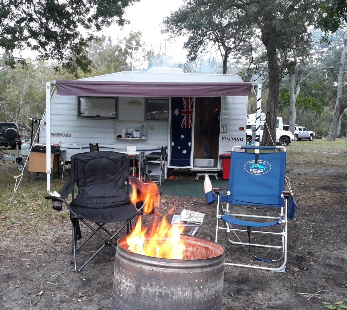 Our little "Big Kev" is a 16ft 2003 Viscount Newport with all the bells and whistles we'd ever need. Our little van has all the mod cons like air-con, combo bathroom, washing machine, large fridge/freezer and even the kitchen sink! We camp both CVP and Freecamped a little and loved doing Sydney to Melbourne last year and the GOR.