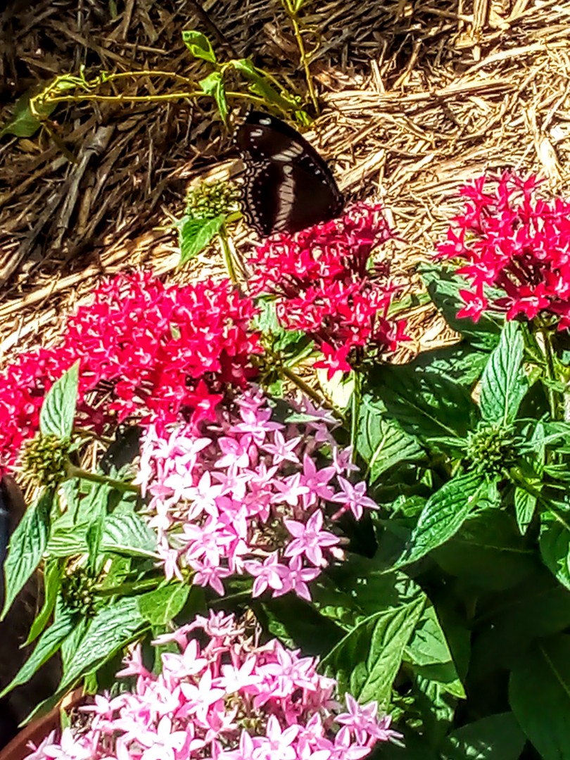 Had a first Ulyssess do a F.I.F.O yesterday over my PENTAs flowers,checking out a feed..they more elusive than others.& Like more private browsing..