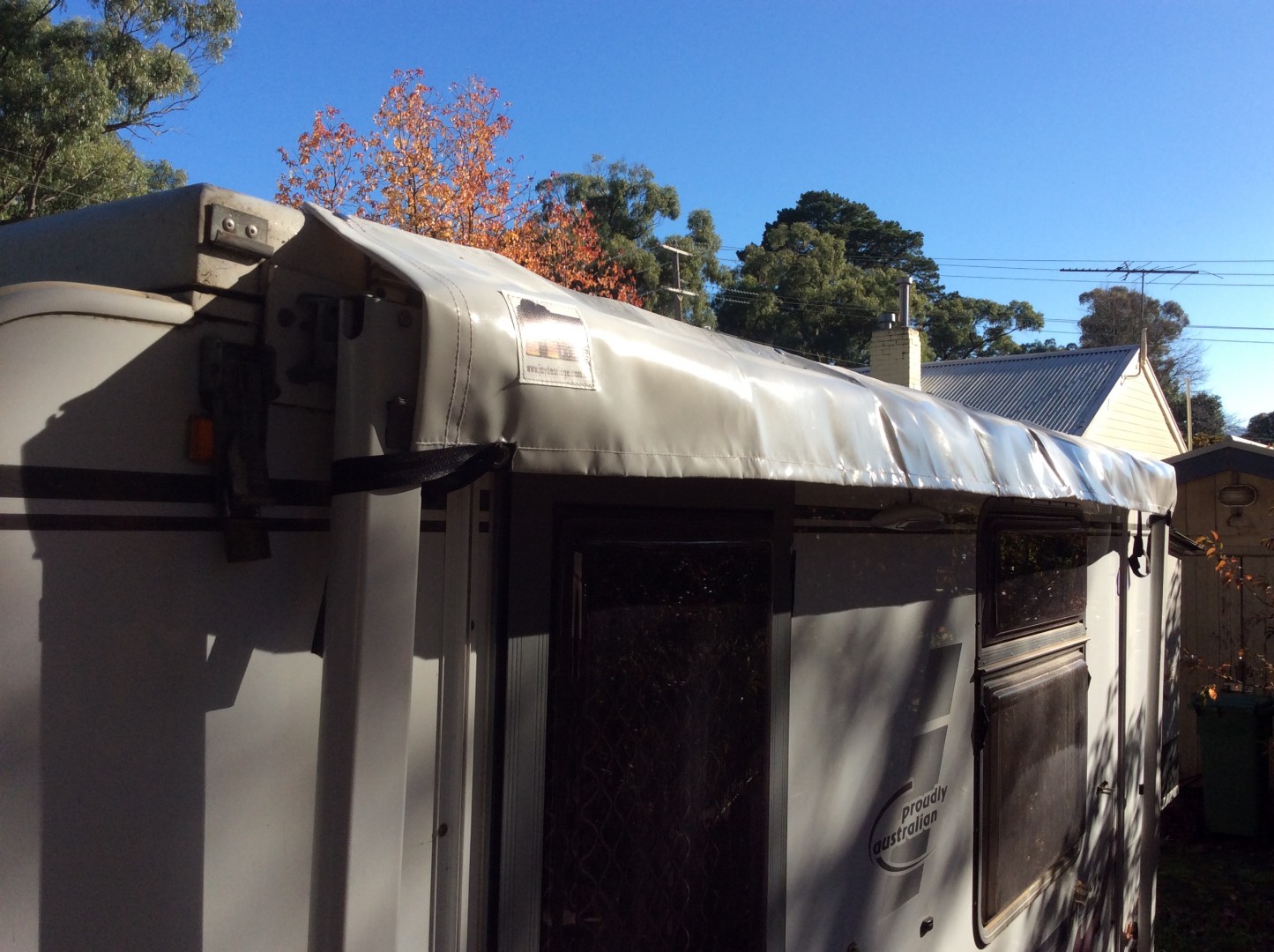 My awning need replacing but is holding together with white cloth based tape from Doug's green shed.