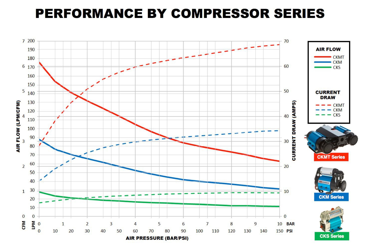 What should be stated is SCFM (standard cubic feet per minute). CFM or LPM is a meaningless statement, it needs an S in front, but none of the car compressors state an S. As a rough guide knock off about 1% efficiency for every metre of hose, connector & power lead. It is best to run the engine while using the compressor as 1 compesscom will draw about 25 to 30 amps.