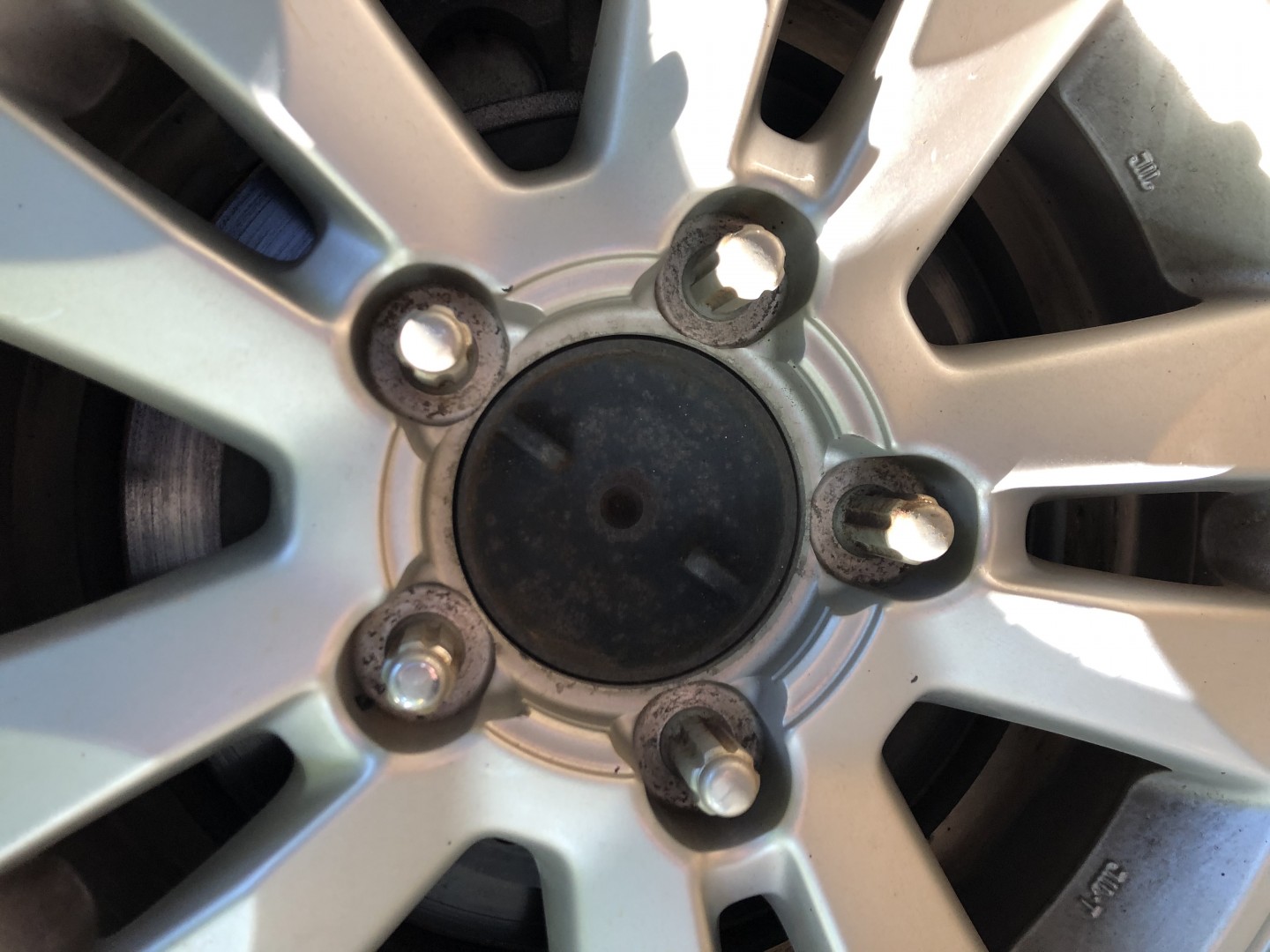 edit ... Does the nice looking cap with the eight rather small fixings just cover the (presumably 5 to match the other one) wheel nuts? Surely that's the answer to the riddle.